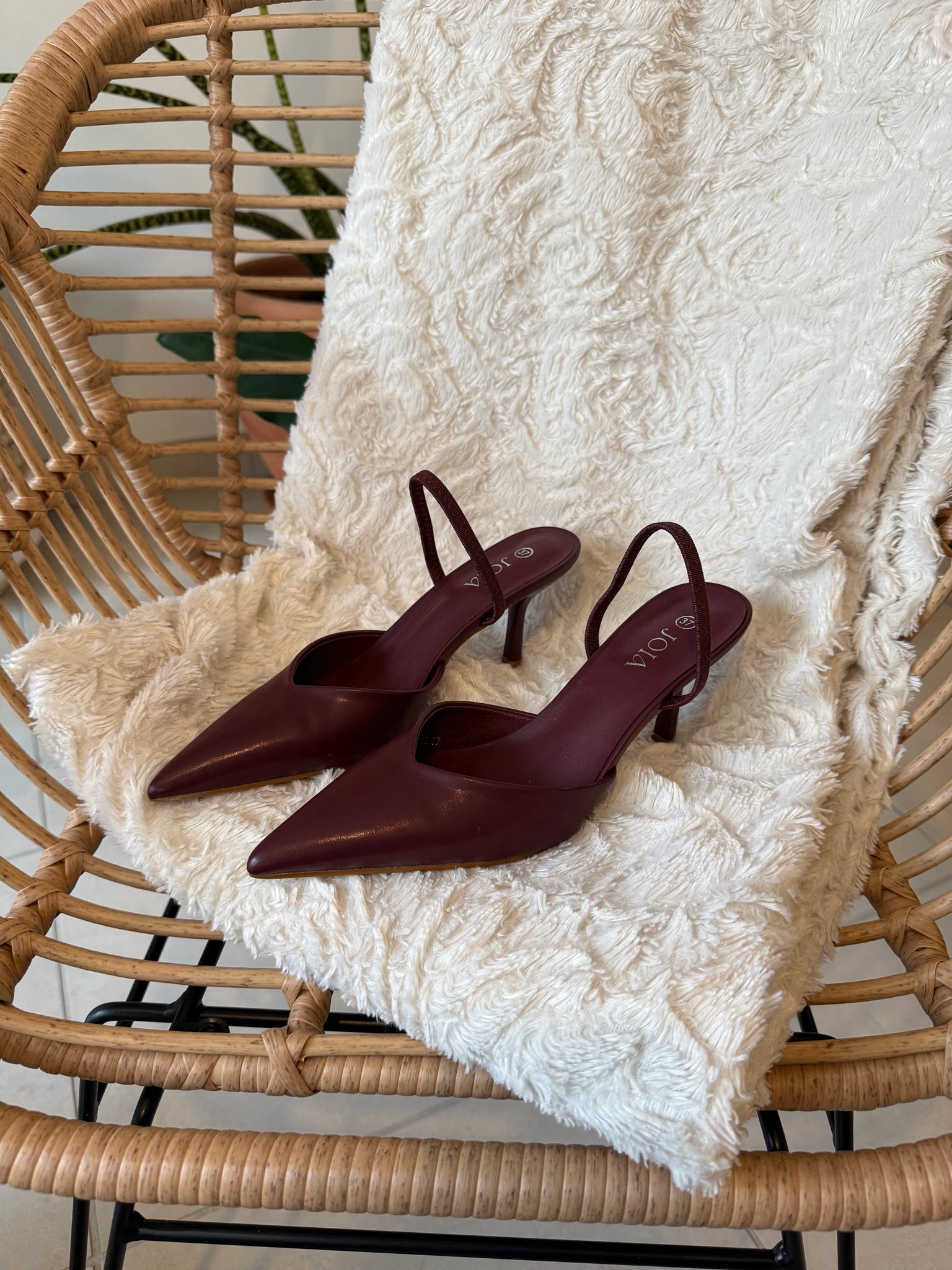 Pointu au bout et dénudé sur le derrière avec une lance élastique (qui maintient bien le pied)