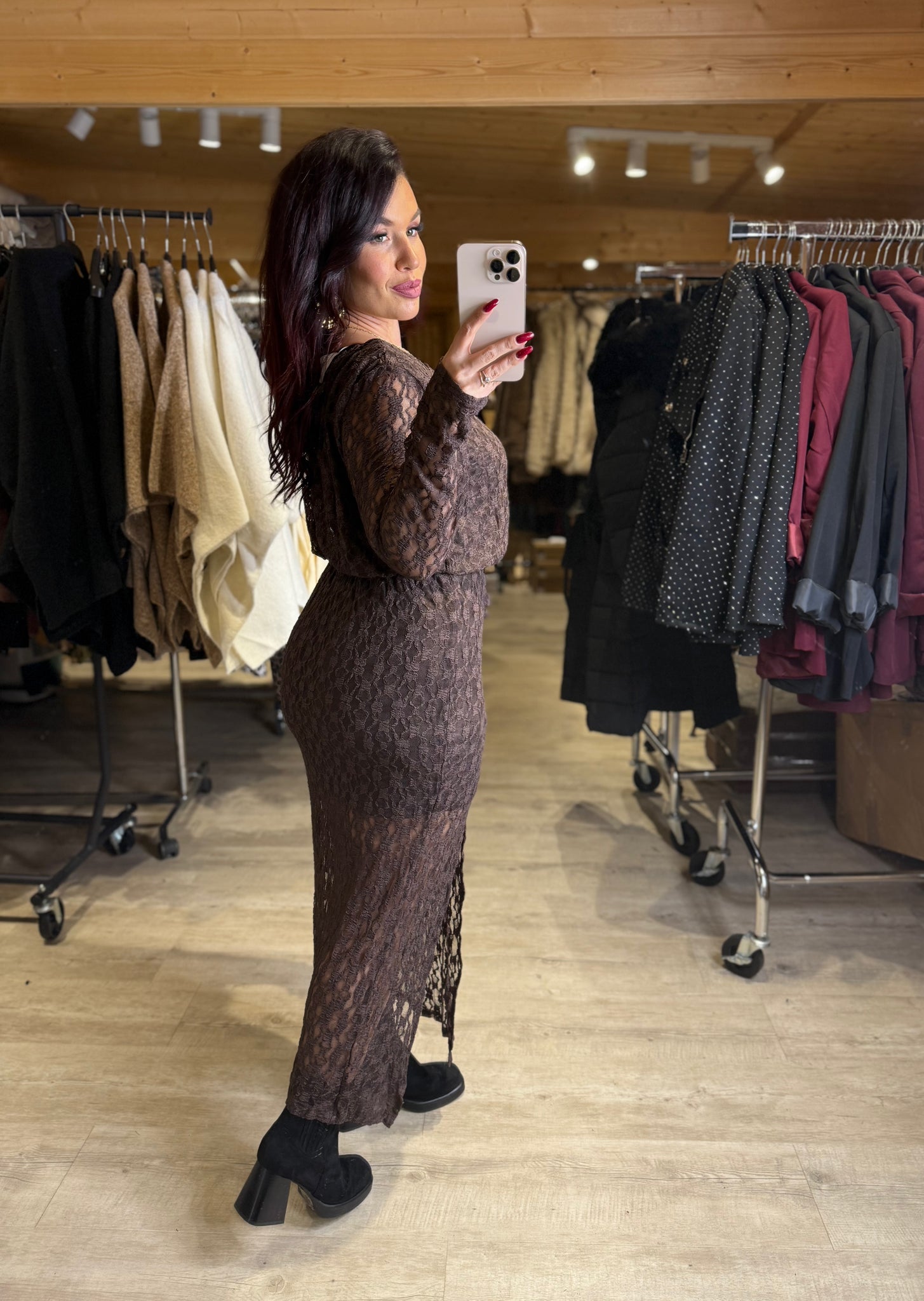 Robe longue dentelle chocolat DOLA ( 34 au 42 )
