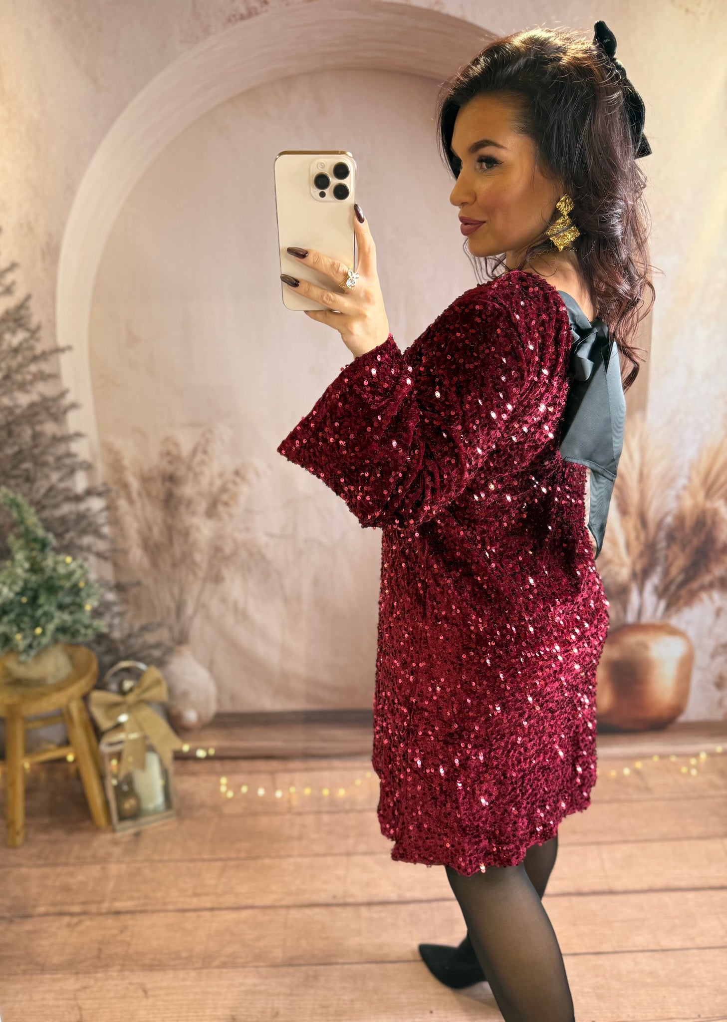 Robe en sequins bordeaux noeud noir dans le dos ANASTASIA (34 au 42)