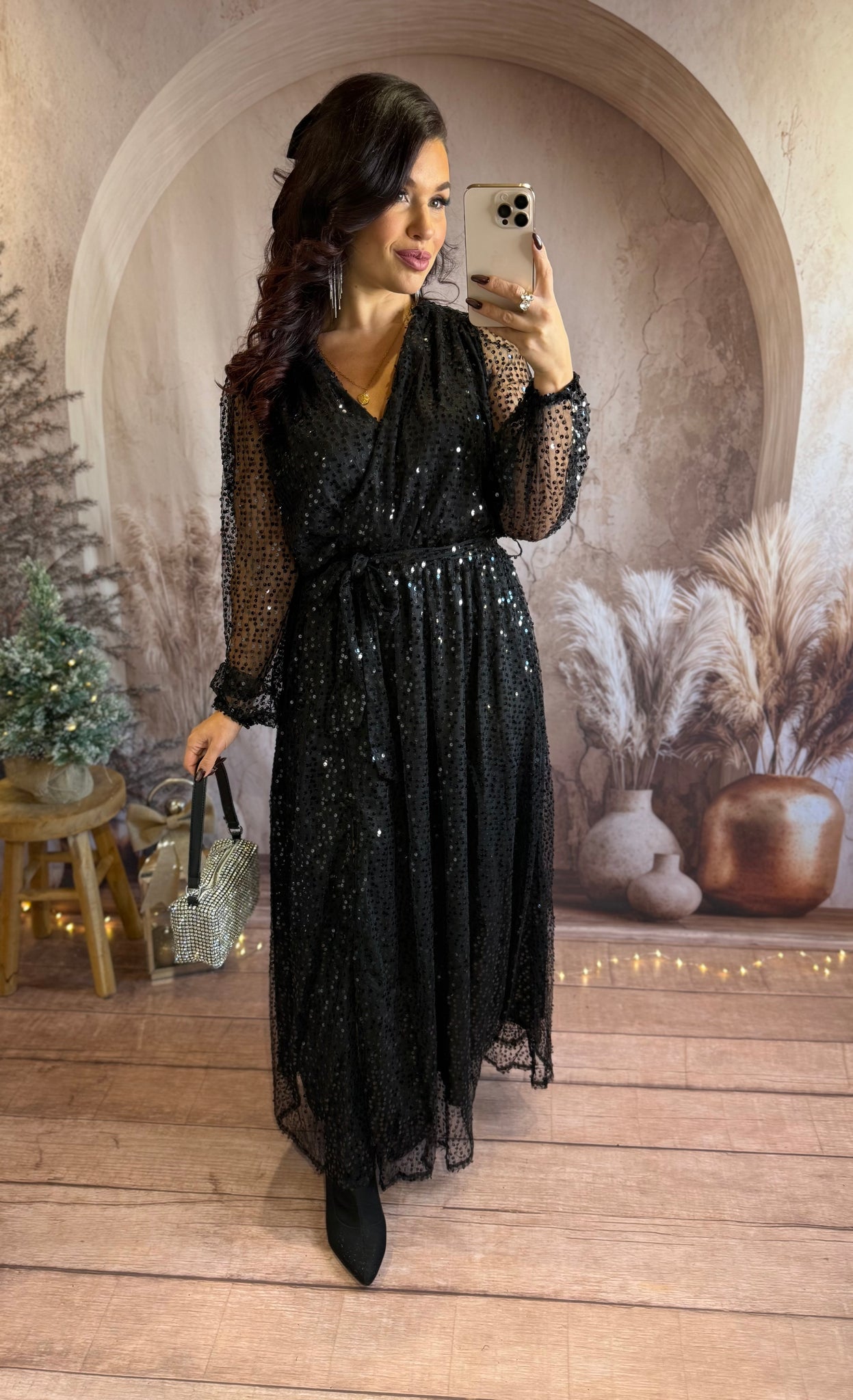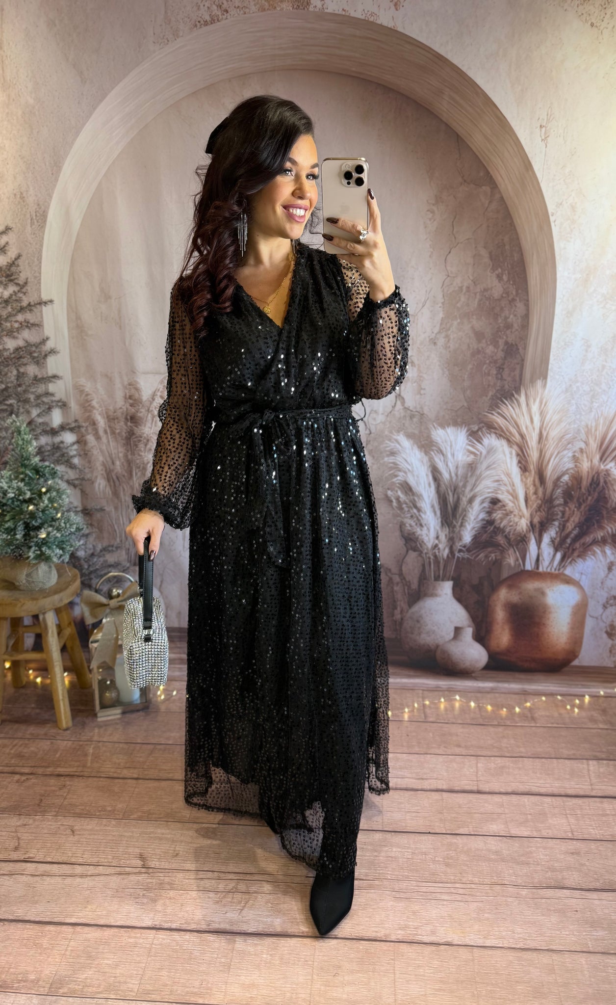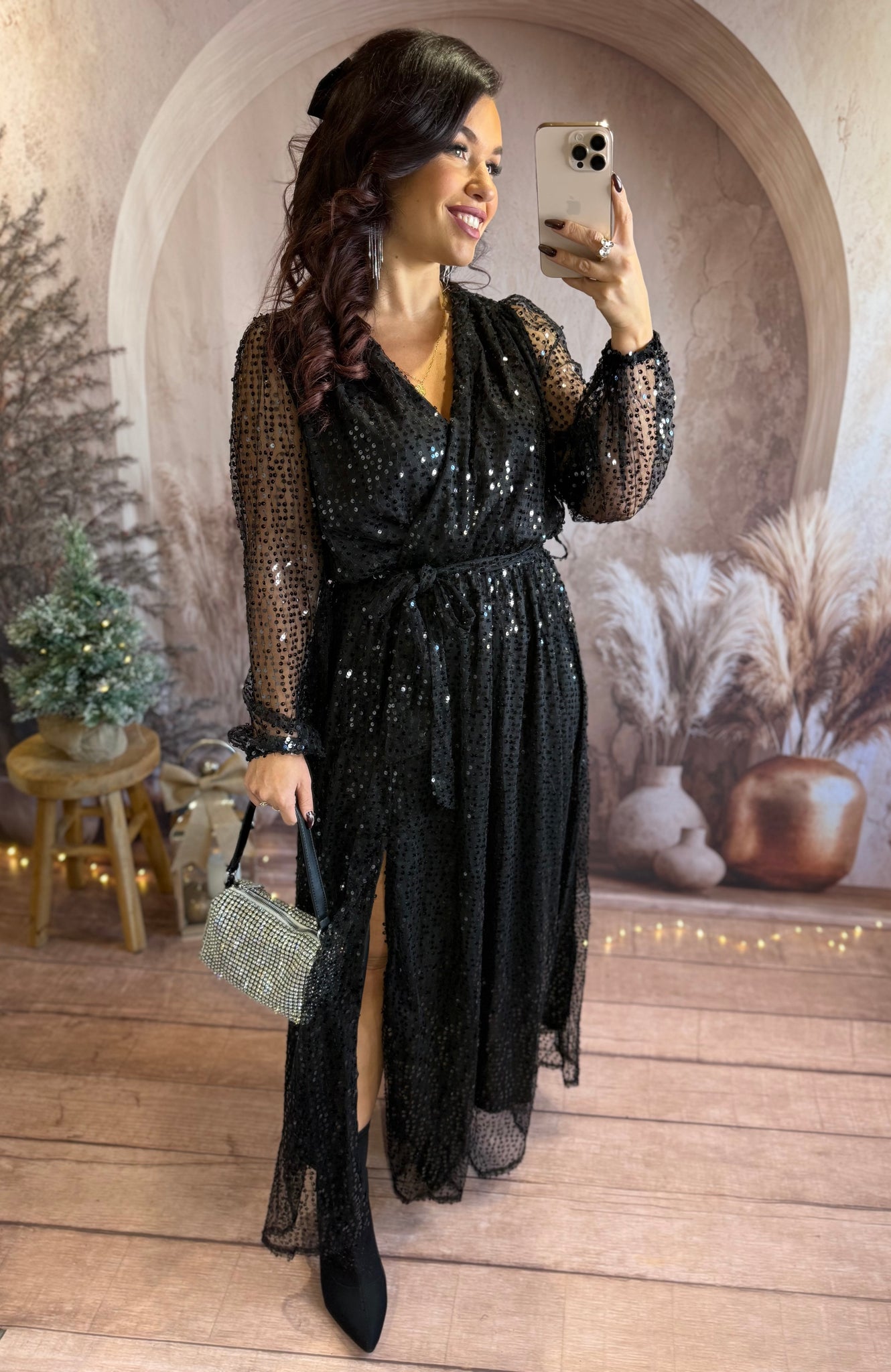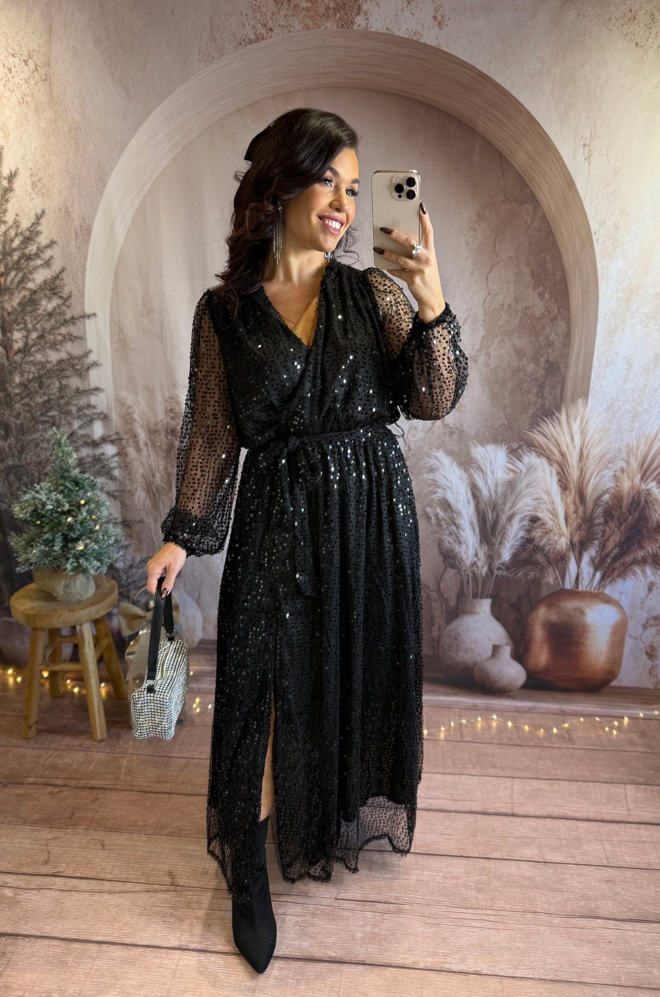 Robe longue à sequins noir fendu ALICE (36 au 40)