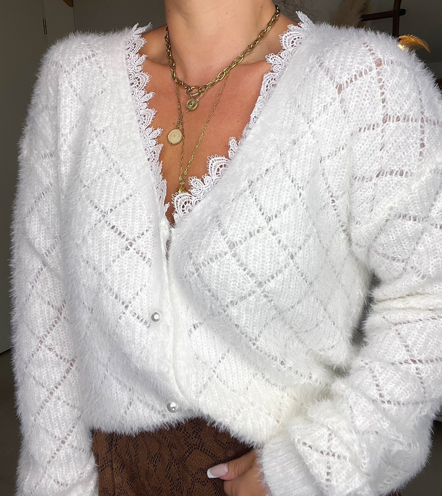 Gilet doudou dentelle blanc CELLA (36 au 44 )
