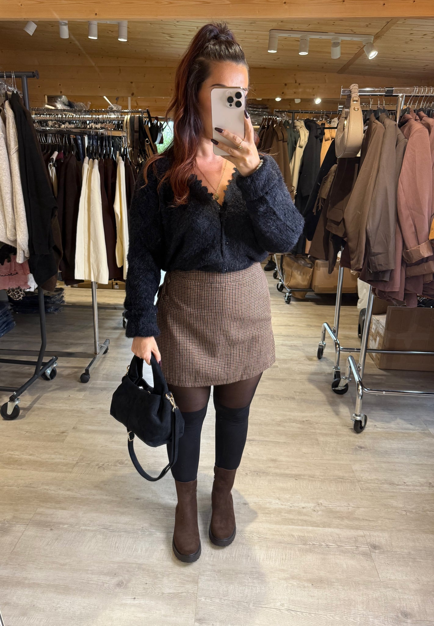 Gilet doudou dentelle noir CELLA (36 au 48)