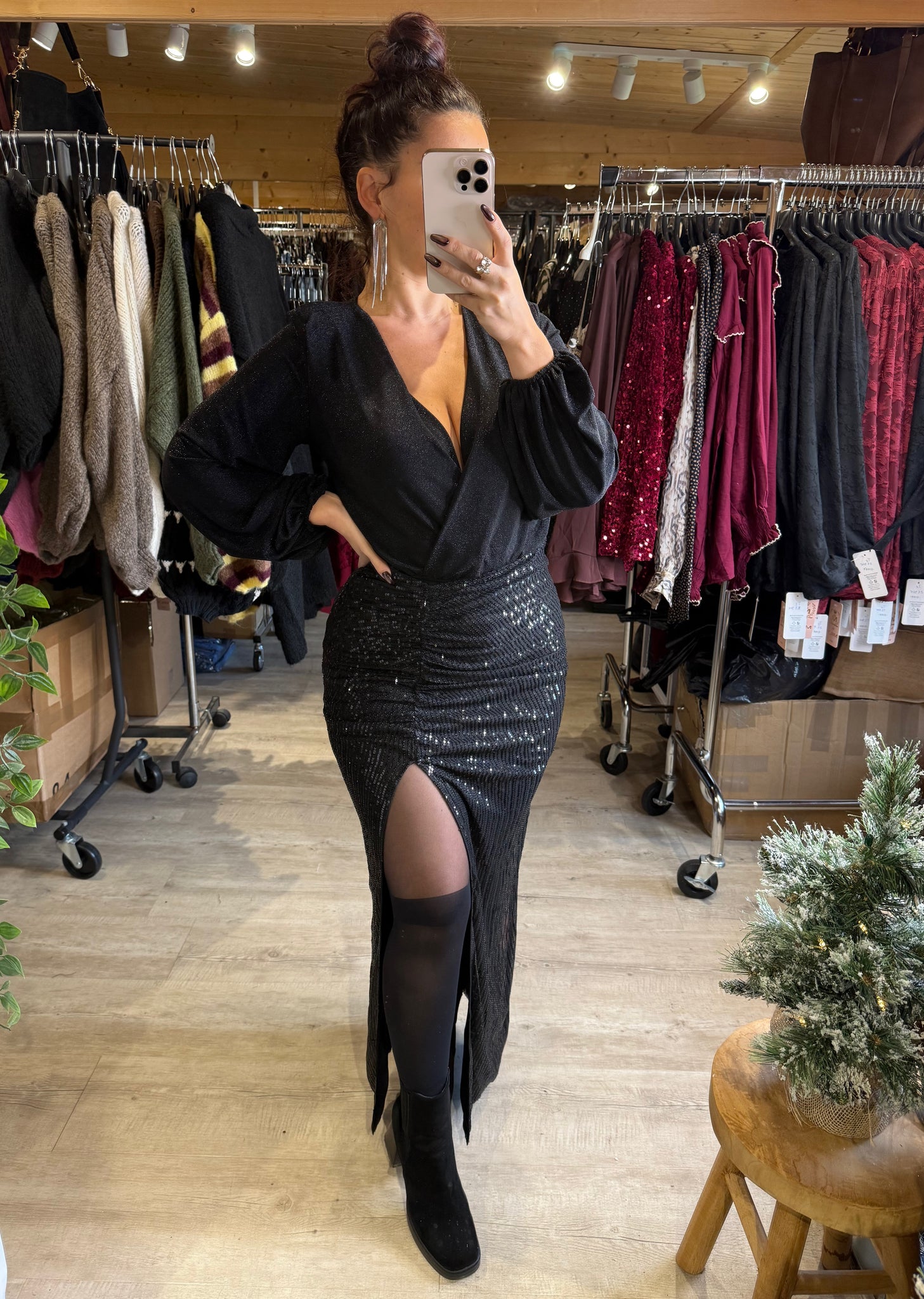 Jupe sequin fendu noir PAOLA (34 au 40)