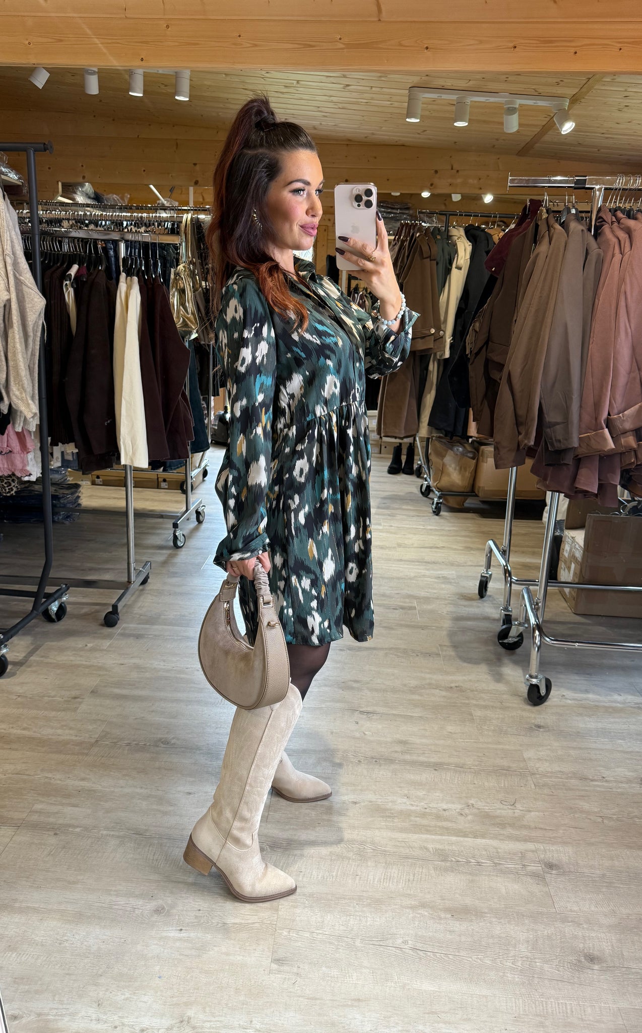 Robe chemise kaki motif écru SOFIA (36 au 50)