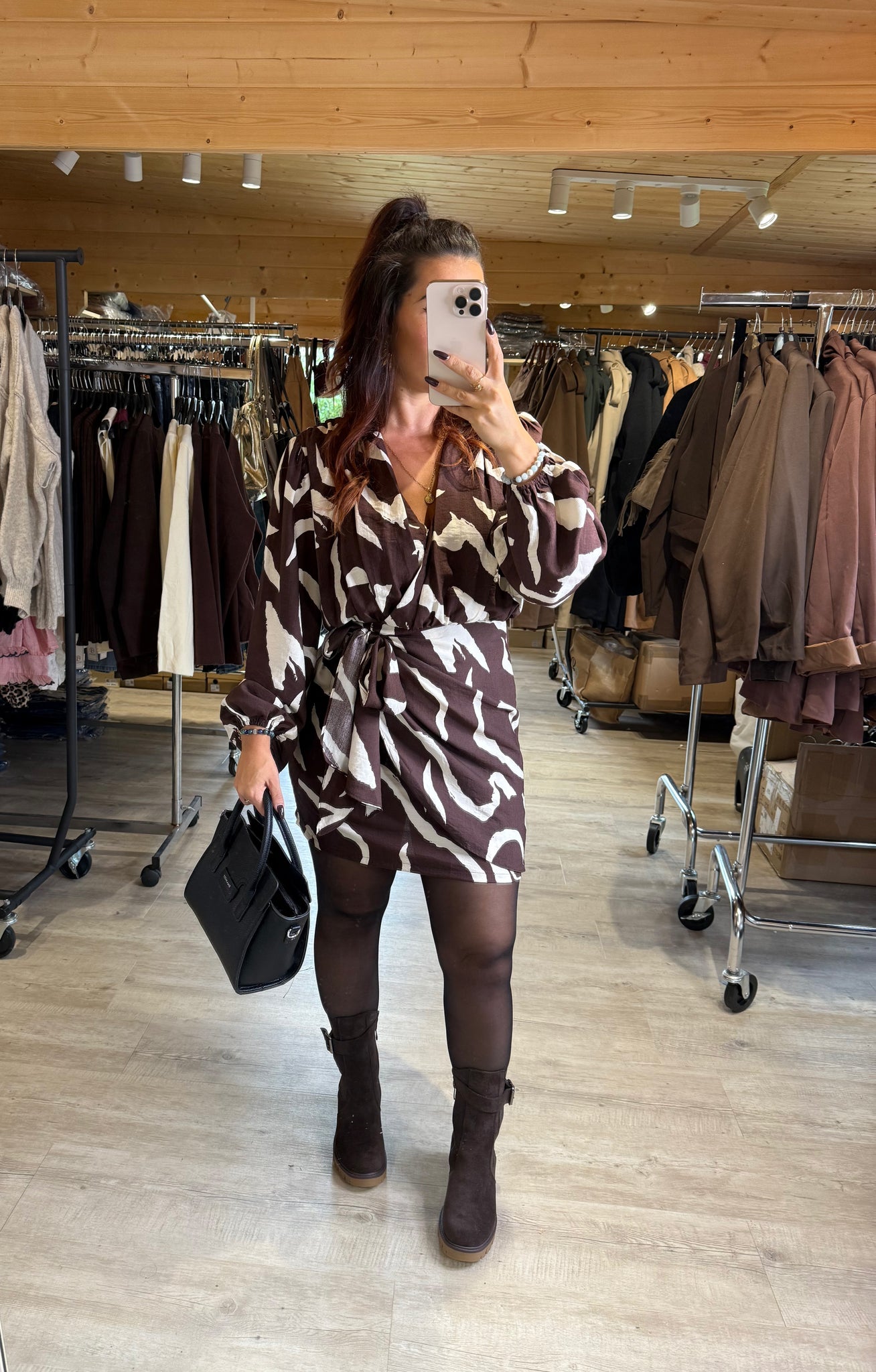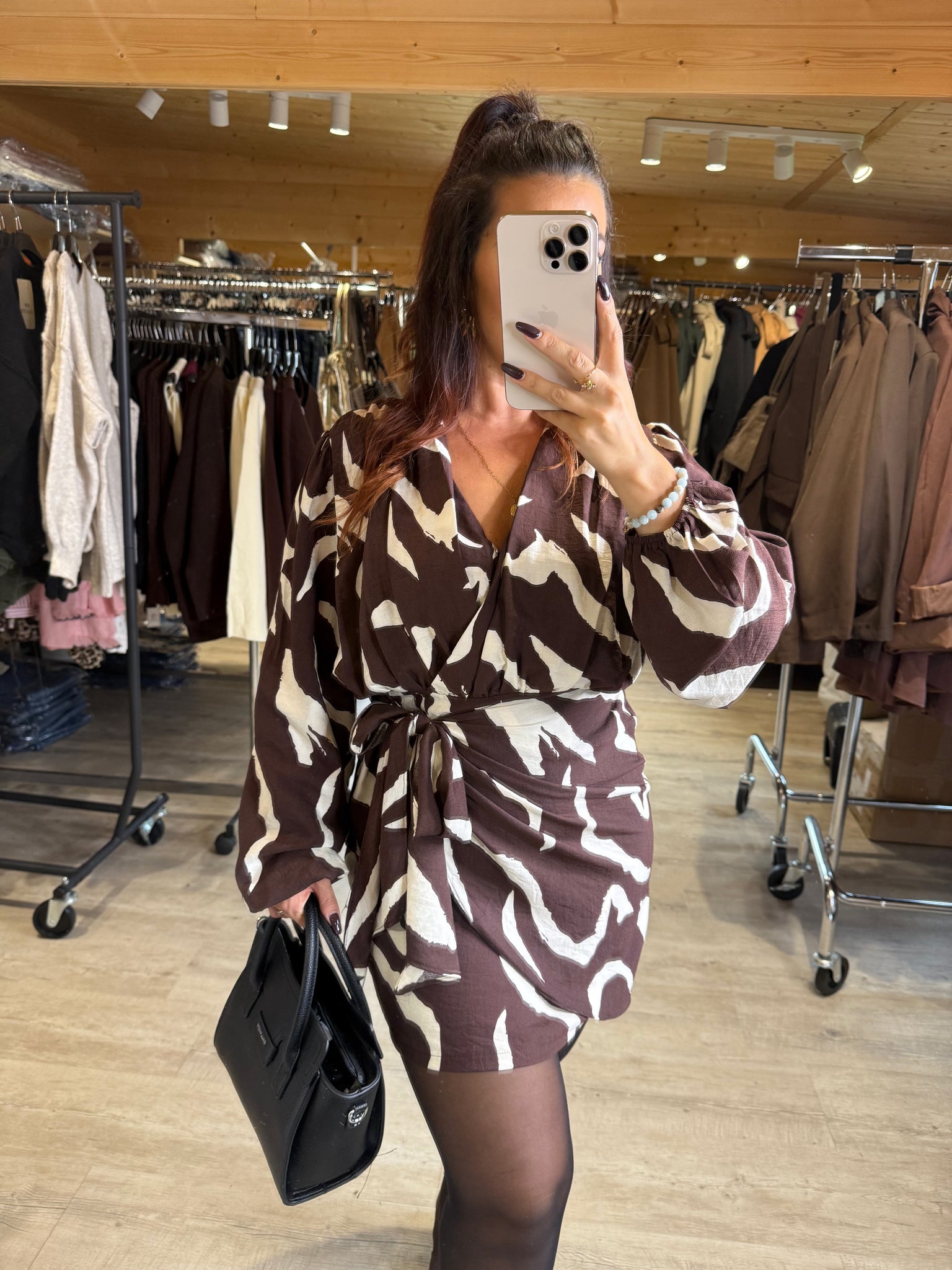 Robe style portefeuille écru/chocolat KITTY (36 au 40)