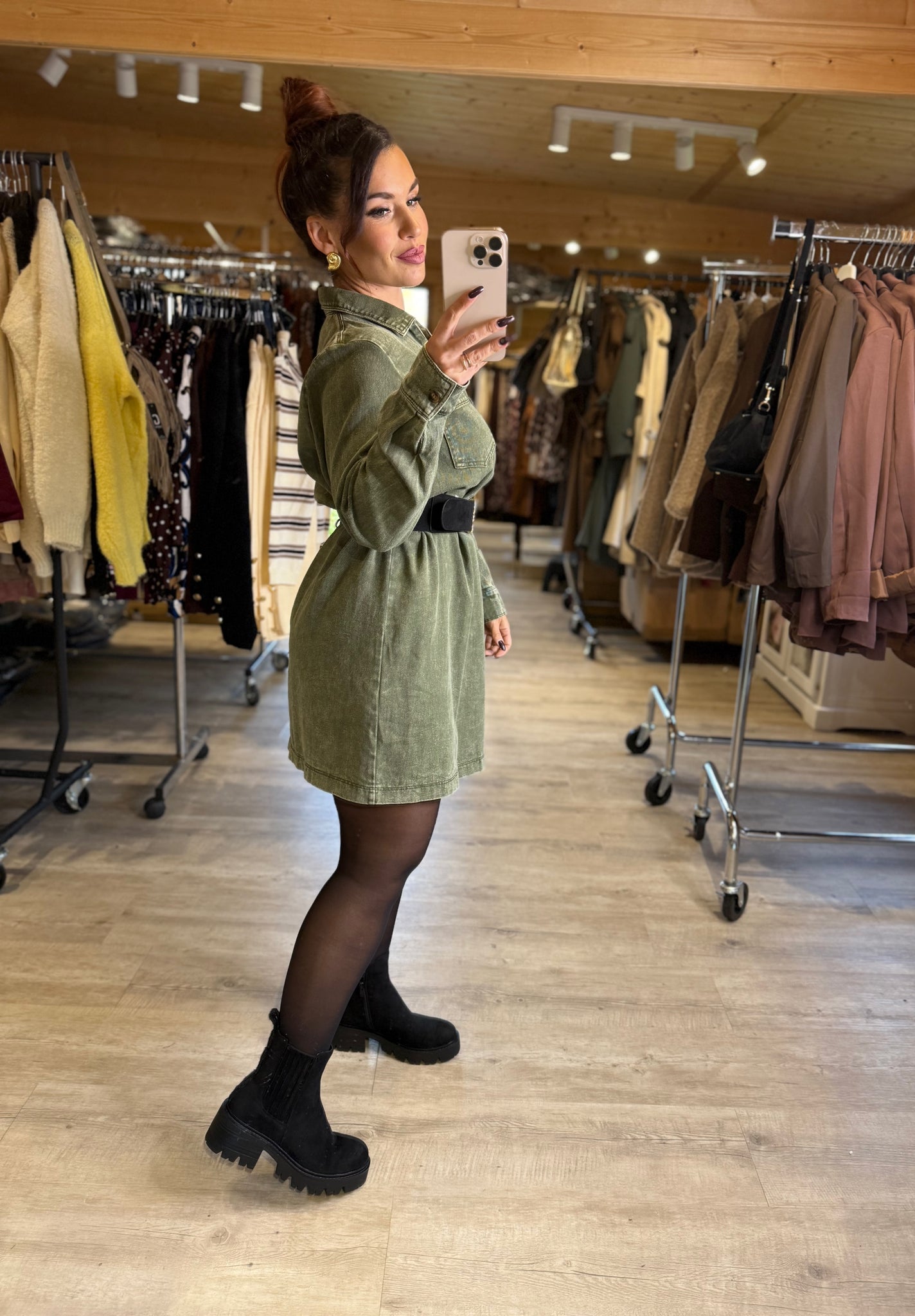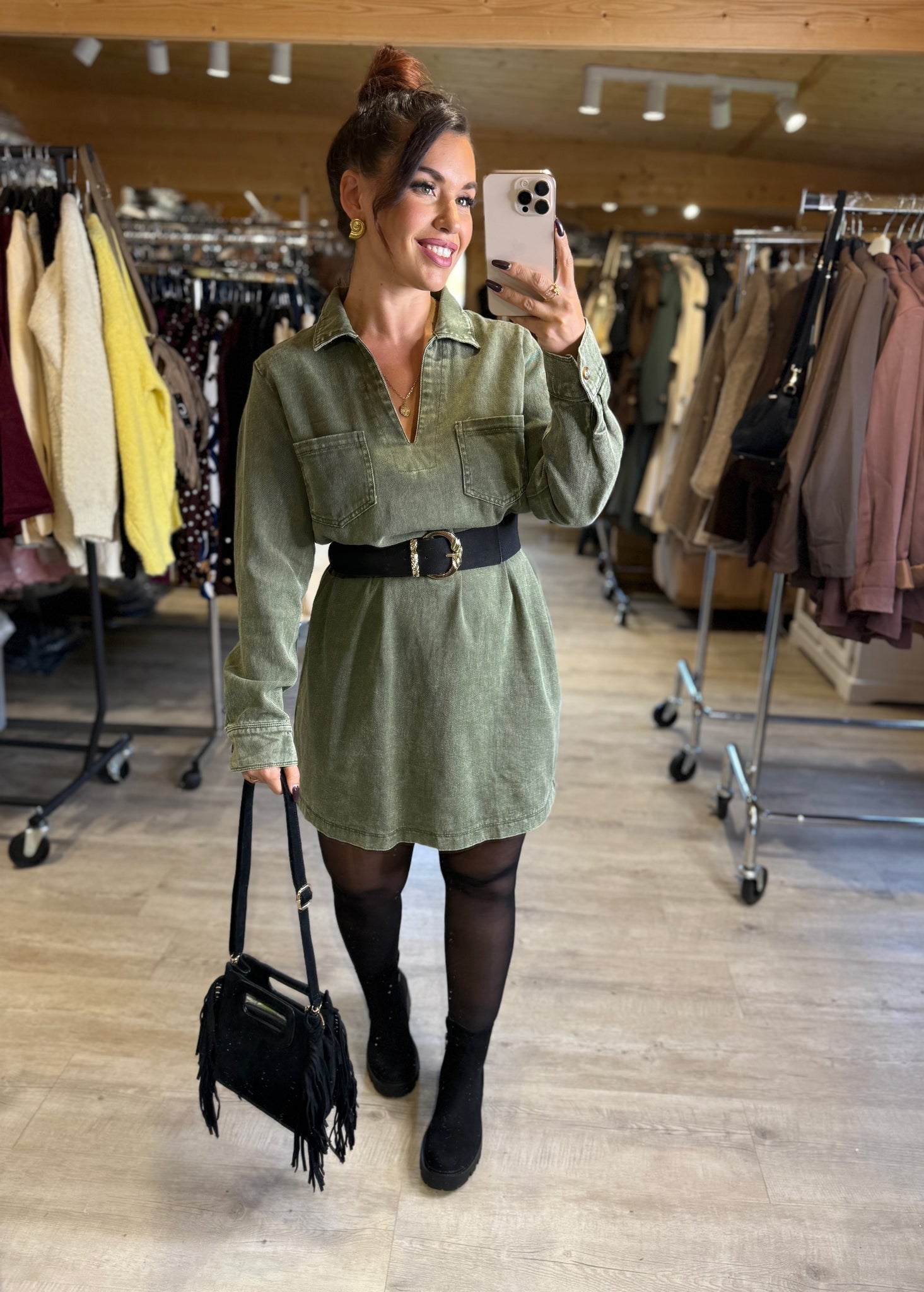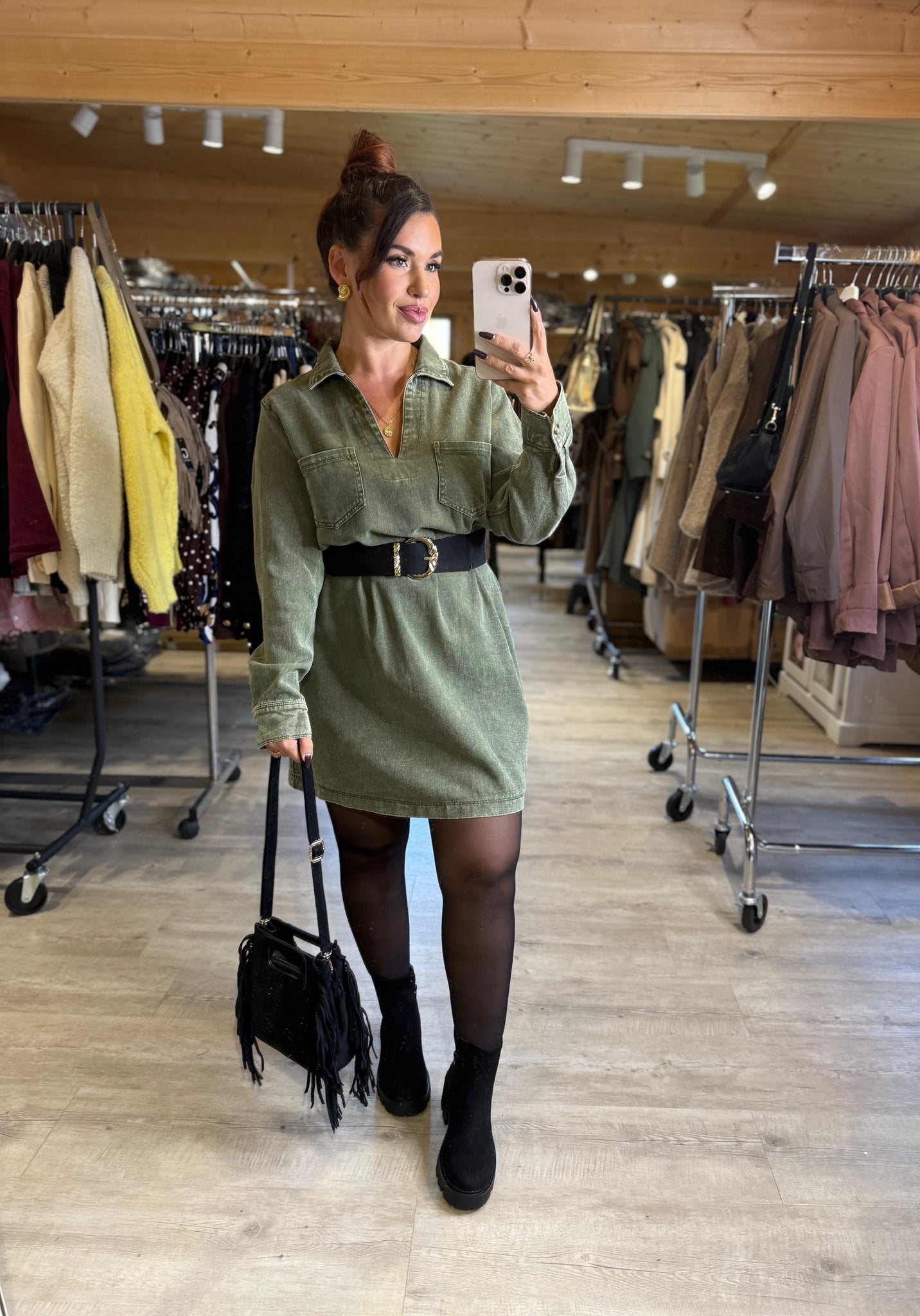 Robe denim coupe droite kaki SYLVIE (36 au 42)