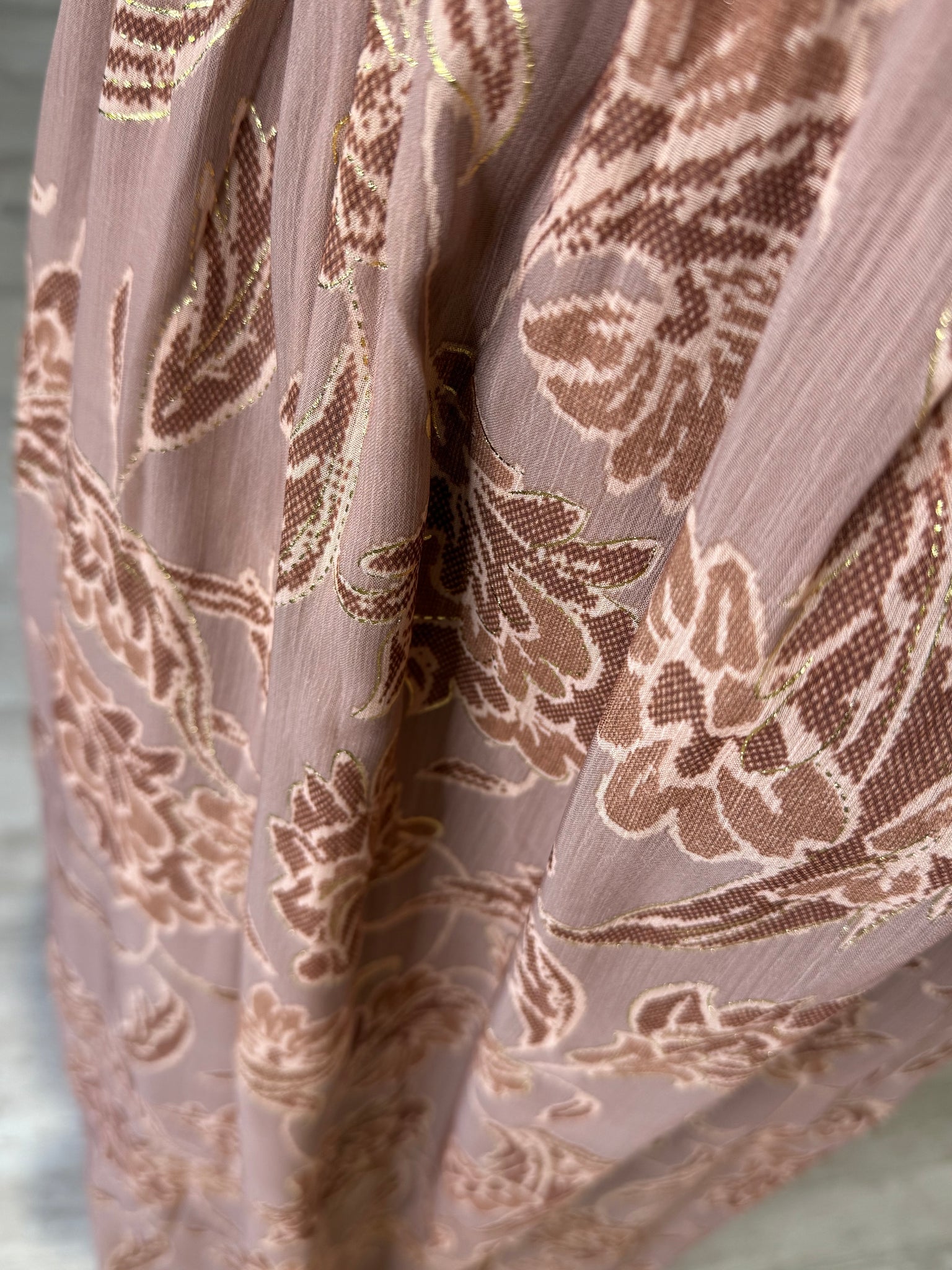 Robe longue taupe motif fleuri camel MANON (40 au 48)