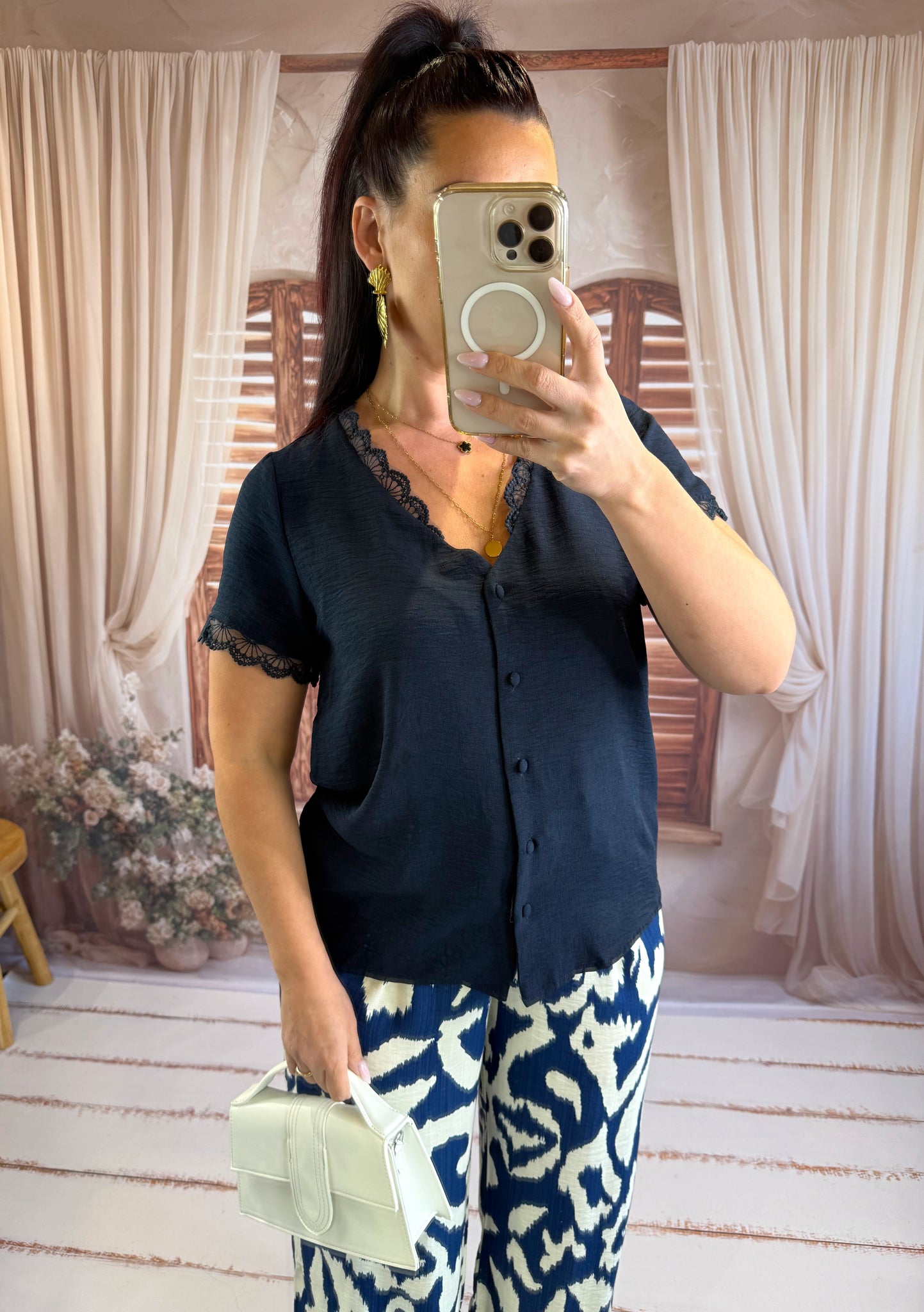 - Le chemisier s’ouvre avec boutons