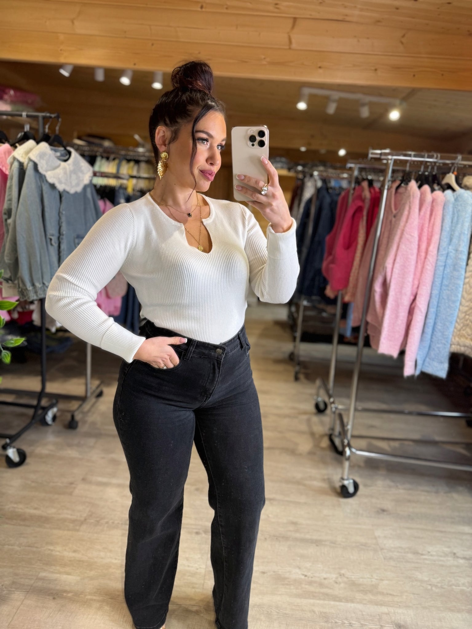 Top côtelé, col v blanc HARPER (34 au 42)