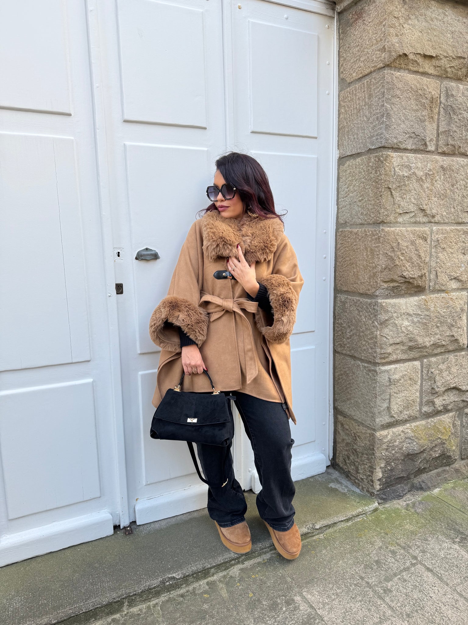 Manteau cape fourrure camel NÉLYA (36 au 46)
